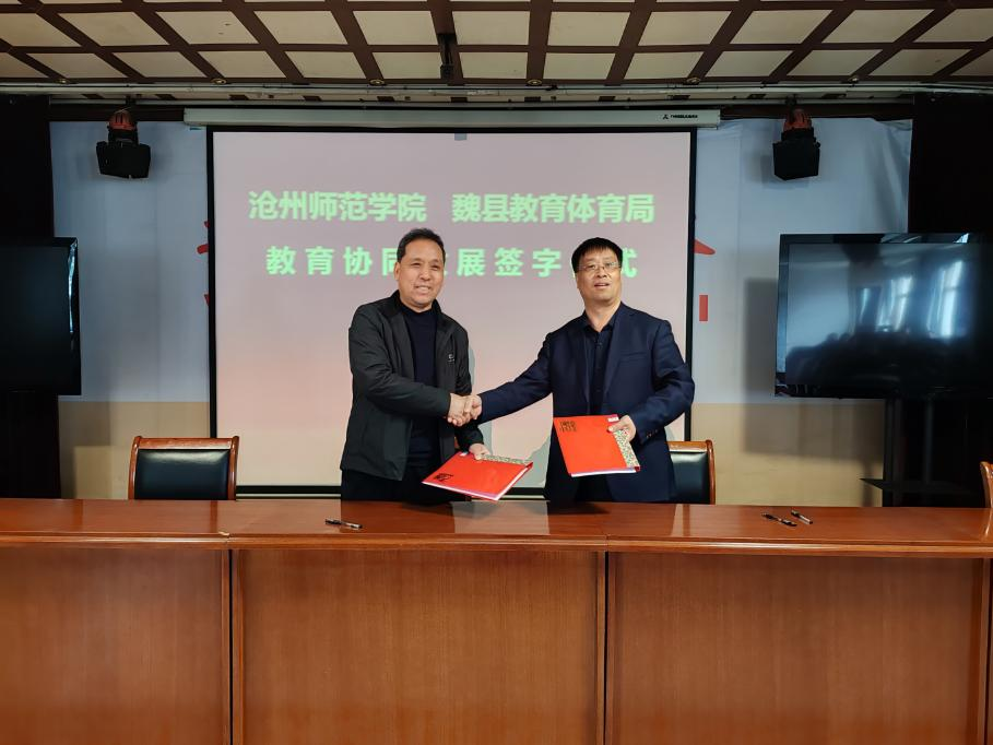 范小振介绍了我校办学历史和近年来的发展成就,并表示对今后的合作交流充满期待。魏县教育局局长赵志国对我校一行的到来表示欢迎,他介绍了魏县中学教育的师资现状和对未来合作的迫切性。双方就实习内容、形式、合作领域、实习对象等内容达成高度一致,并现场签定教育实习协议。